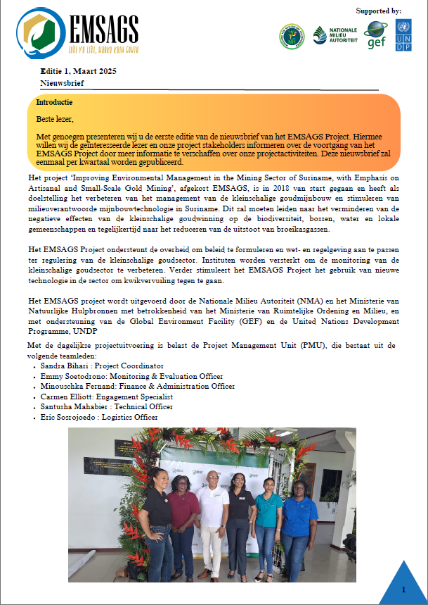 "Improving Environmental Management in the Mining Sector of Suriname, with Emphasis on Artisanal and Small-Scale Gold Mining (ASGM)" - EMSAGS Project