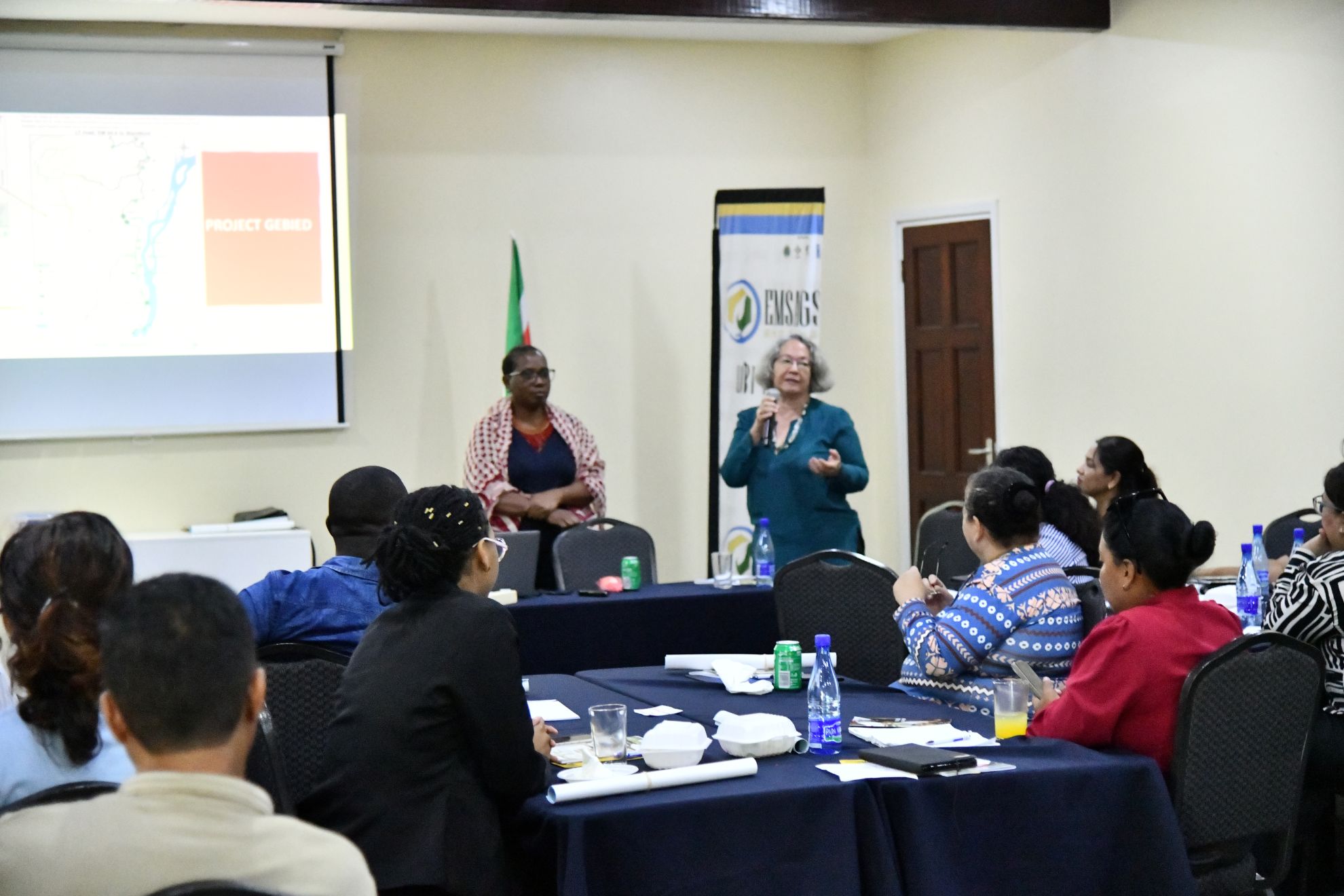 Het Agroforestry-project van CELOS, gefinancierd door EMSAGS, werd toegelicht. Dit initiatief is uitgevoerd in Compagniekreek en Brownsweg en richt zich op duurzame boslandbouw/ agroforesrty in nauwe samenwerking met lokale gemeenschappen. - Aandacht voor gender assessment in Snesi kondre